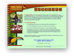 Located in Costa Rica, Poor Man's Paradise needed a new web site that would enticed new visitors by reflecting the feel of their unique setting. This was done by using photographs from actual guests and graphics of regional wildlife to give the site it's flavor.