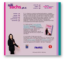 Dr. Nili Sachs is a dynamic professional speaker, consultant, author, and seminar leader. Her expertise in the field of human sexuality, combined with leadership, coaching and humorous skills, makes her seminars an educational and memorable experience.
